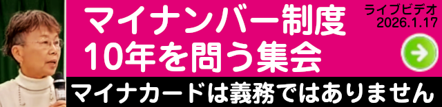 続きを読むtag : マイナンバー制度 共通番号制度 マイナンバー利用拡大 マイナカードは義務ではない 書かない番号持たないカード マイナンバー訴訟 自己情報コントロール権 個人情報保護 情報連携 自治体の個人情報保護 J-LIS 行政システムのセキュリティ 監視社会 プロファイリング 生体認証 顔認証 デジタル庁 運転免許証 在留カード ...